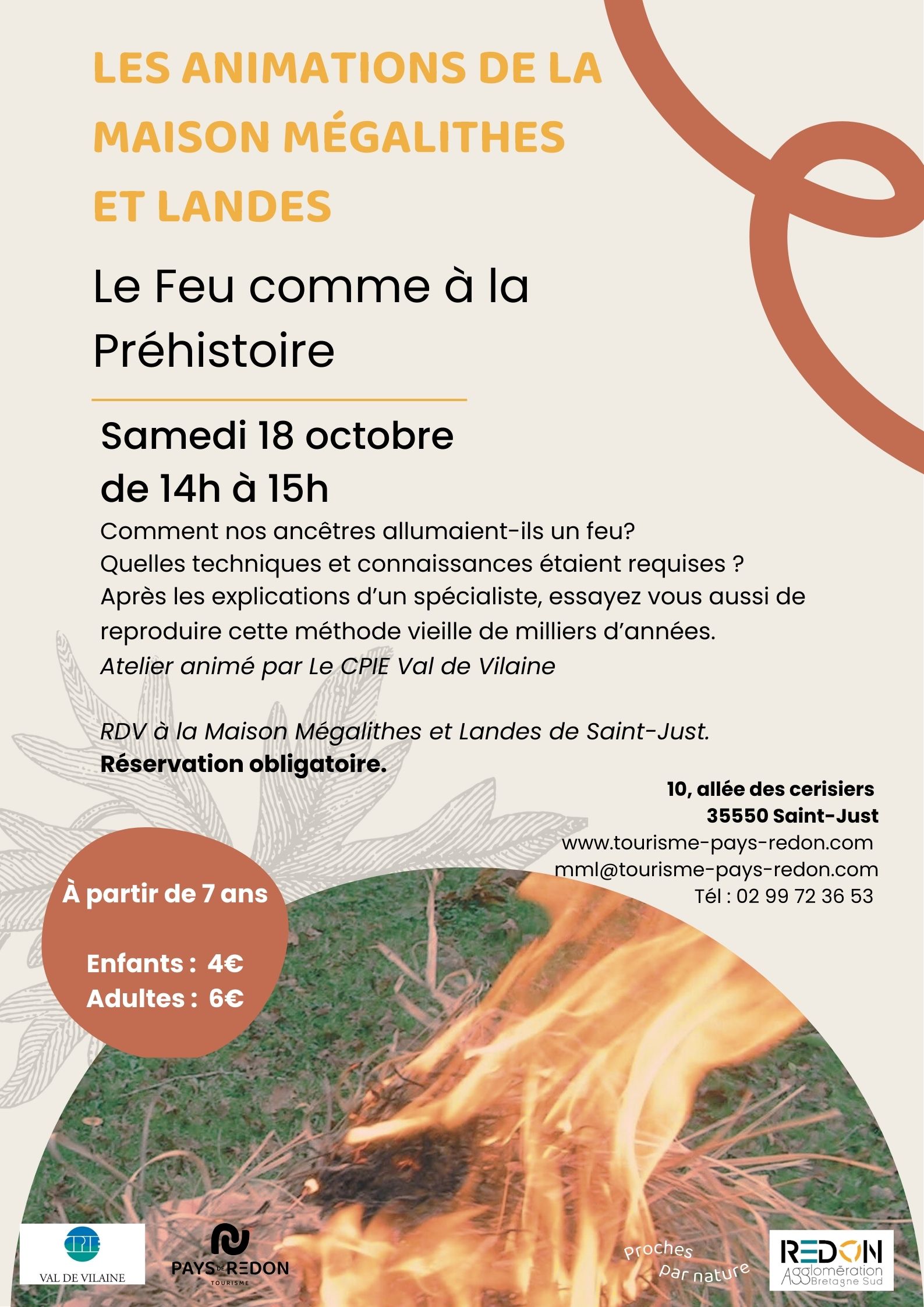 Pour le premier samedi des vacances, nous vous invitons à vous initier à l'allumage d'un feu, façon préhistorique ! Comment faisait-on sans allumettes, il y a des milliers d'années ? Après les explications d'un spécialiste concernant ces méthodes et ces savoirs, essayez vous-même d'allumer un feu comme le faisaient les hommes et les femmes du Néolithique.Sur réservation. À partir de 7 ans.