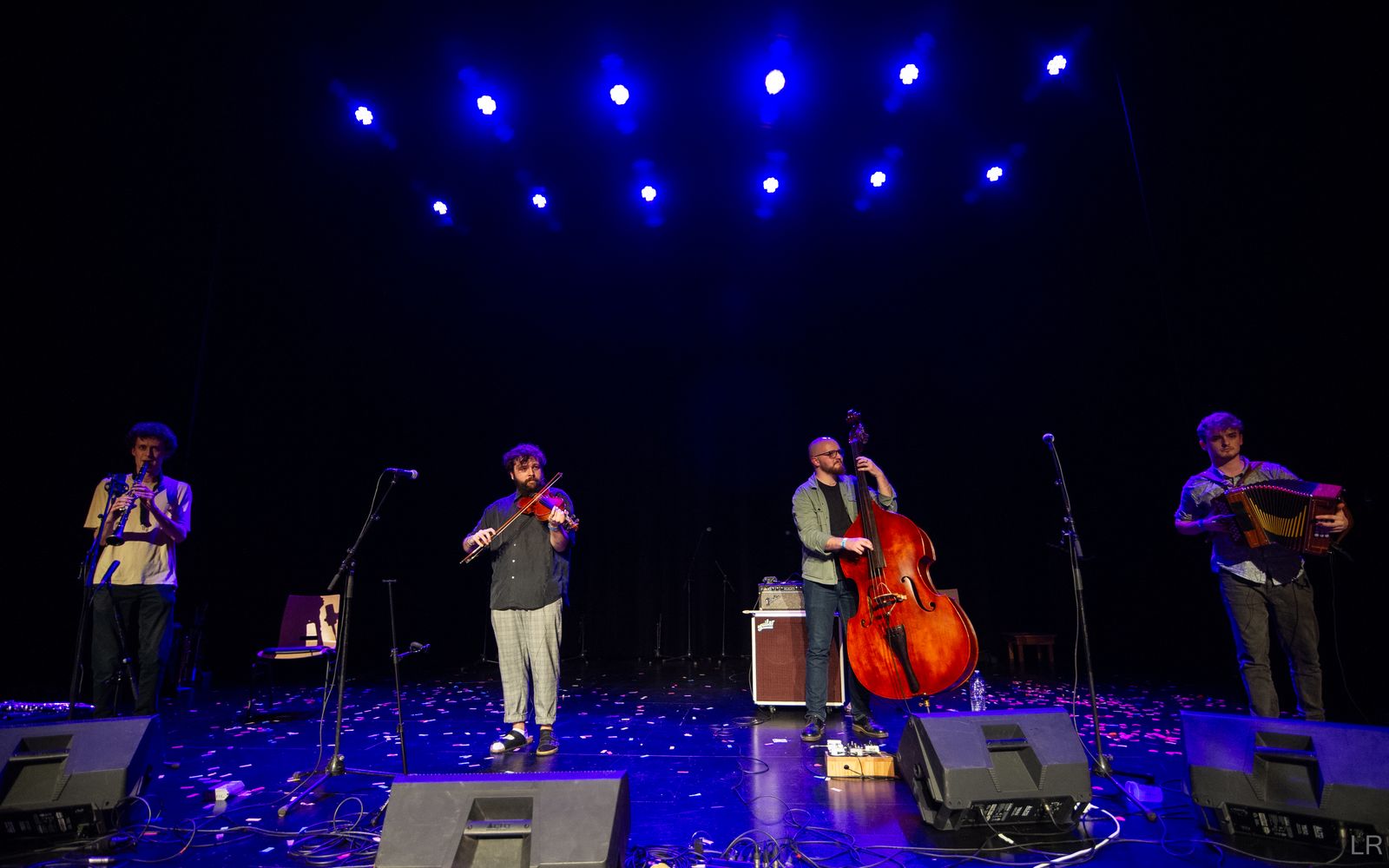 Quatre loustics débarqués des quatre coins de l’Armorique vous embarquent dans une balade fluviale et dansante… de la ridée au plinn ! Attention, ça arRive et ça sonne !Elouan Ar Braz (accordéon diatonique), Mattéo Bloyet (violon), Gwenn Danigo (clarinette basse, clarinette), Morgane Labbe en remplacement de Mattias Le Gall (contrebasse).